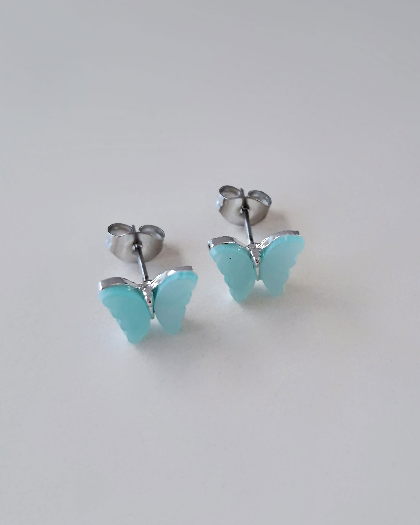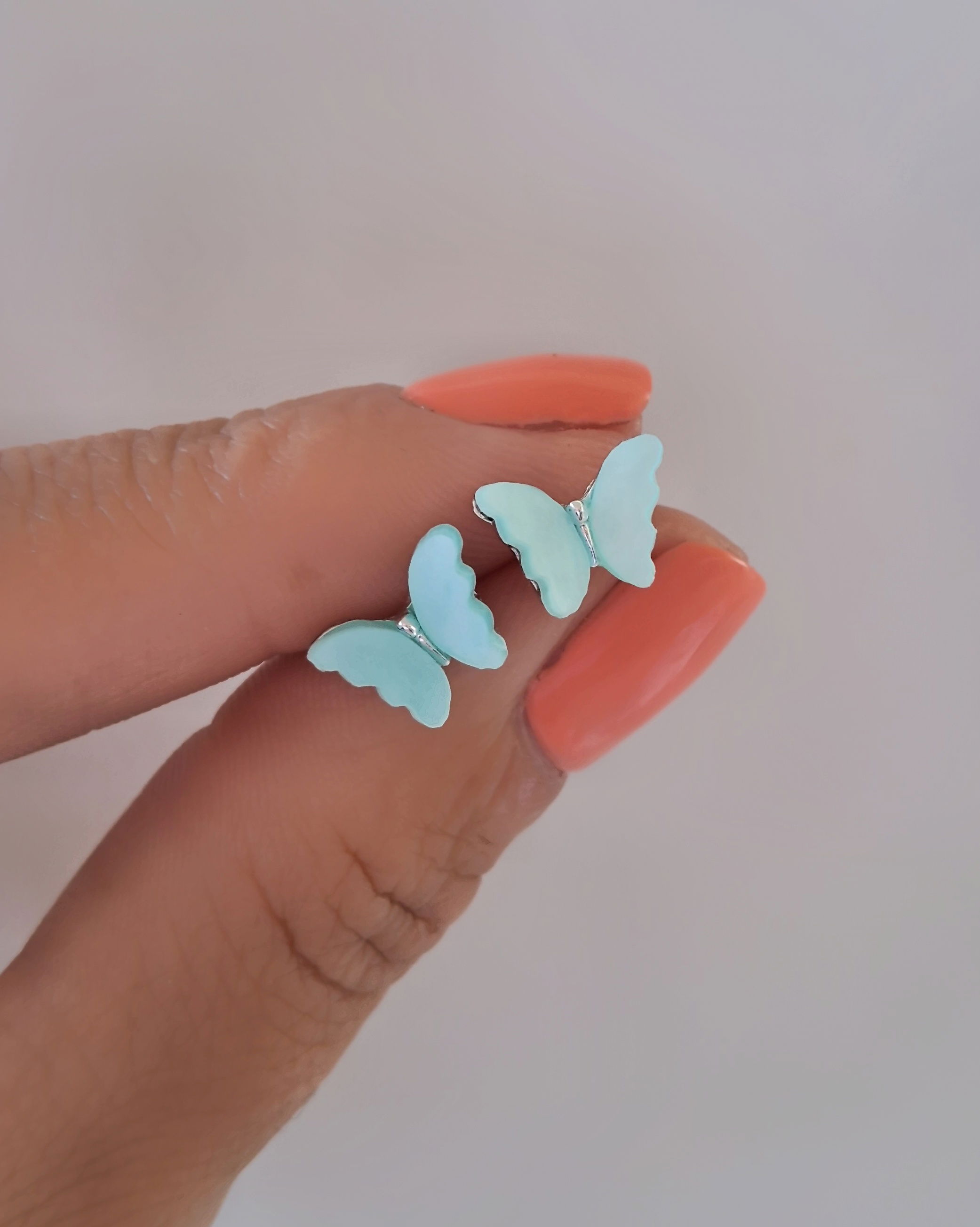 Aros Mariposa Nácar Celeste Ac. Quirúrgico