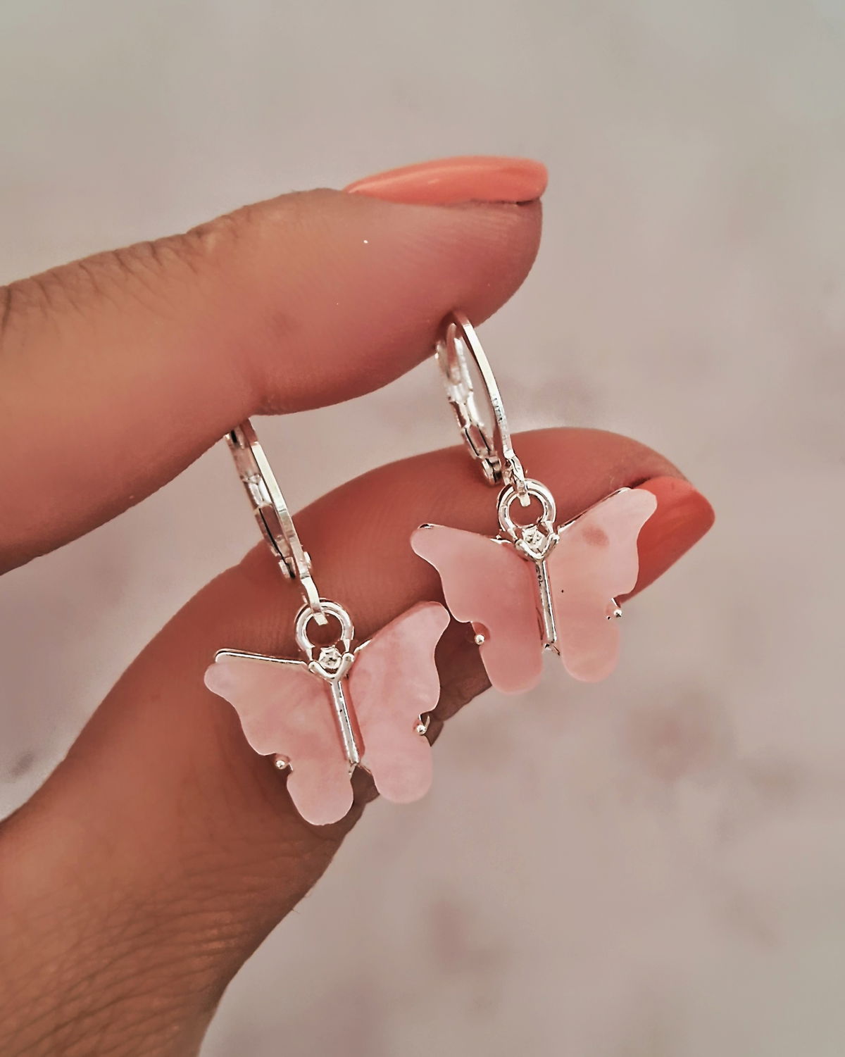 Argollas Mariposa Nacar Rosa Ac. Blanco