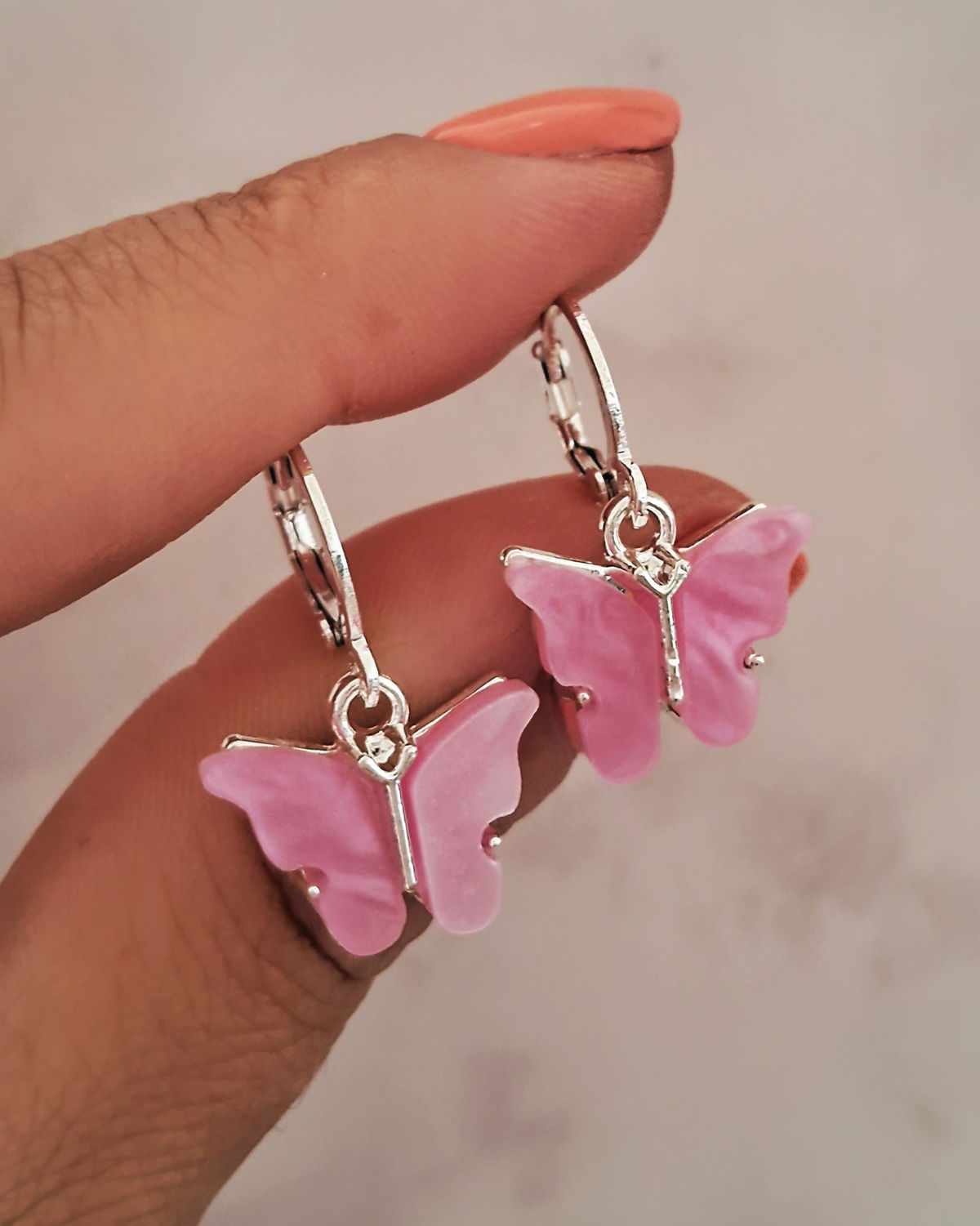 Argollas Mariposa Nacar Fucsia Ac. Blanco