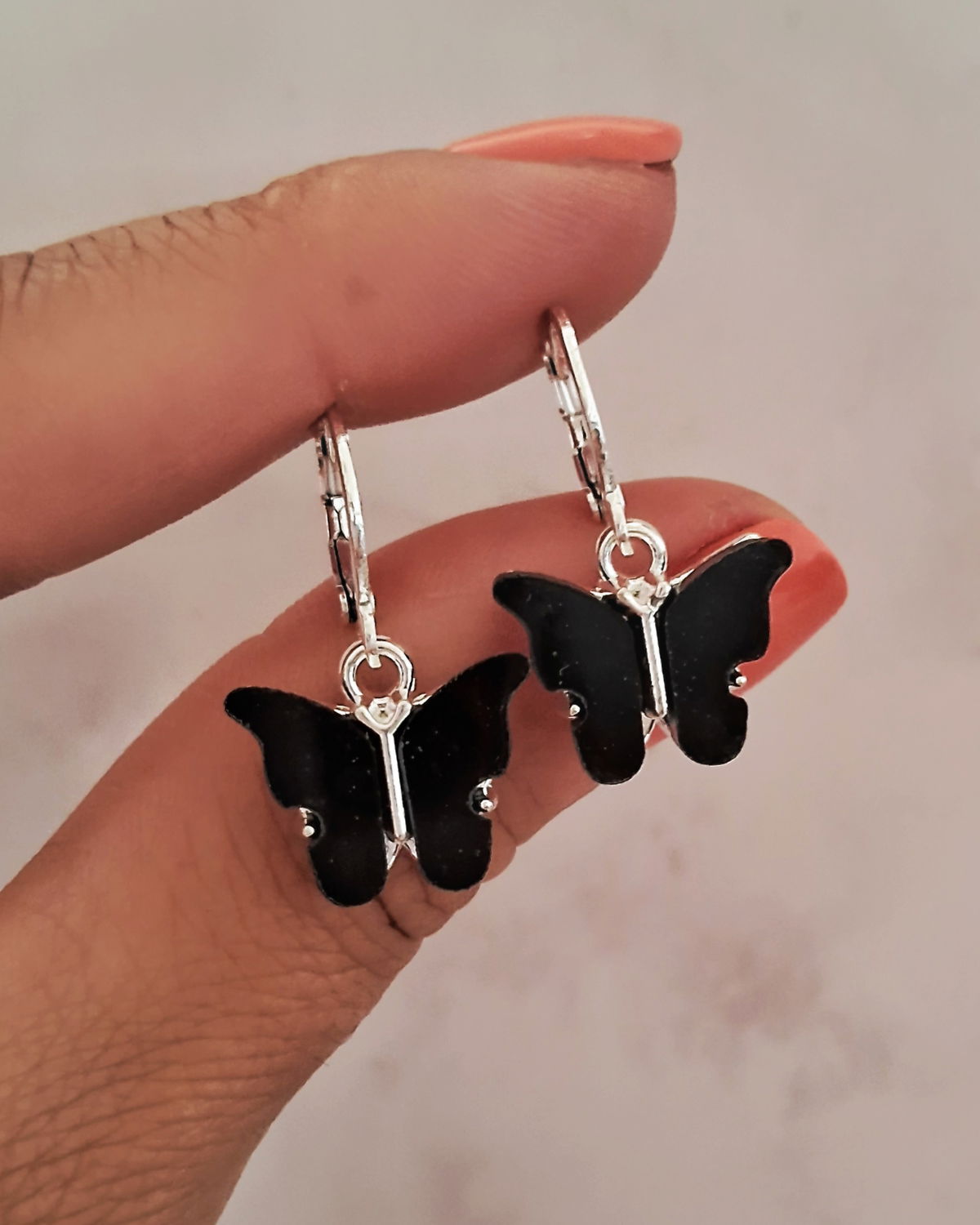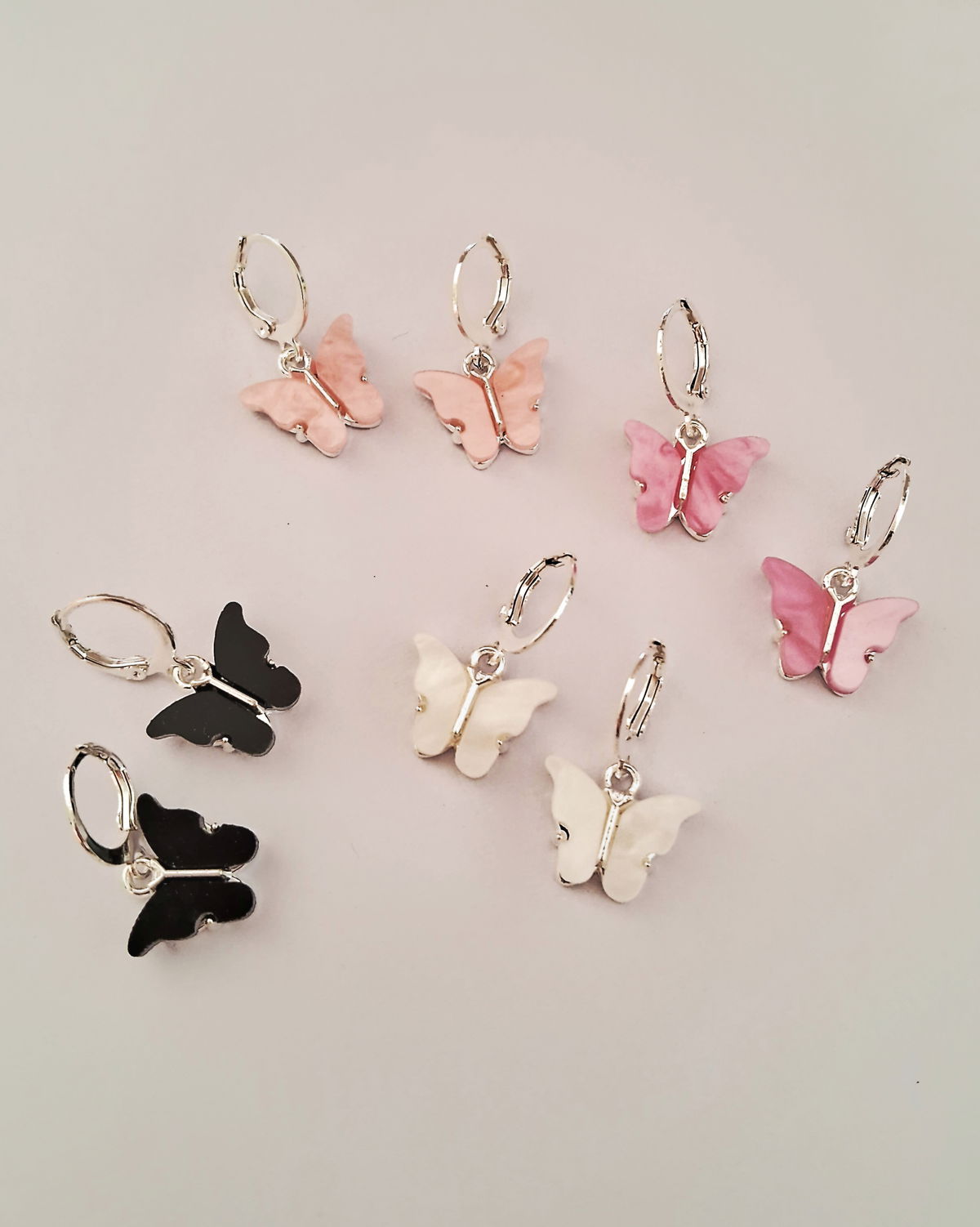Argollas Mariposa Nacar Negro Ac. Blanco