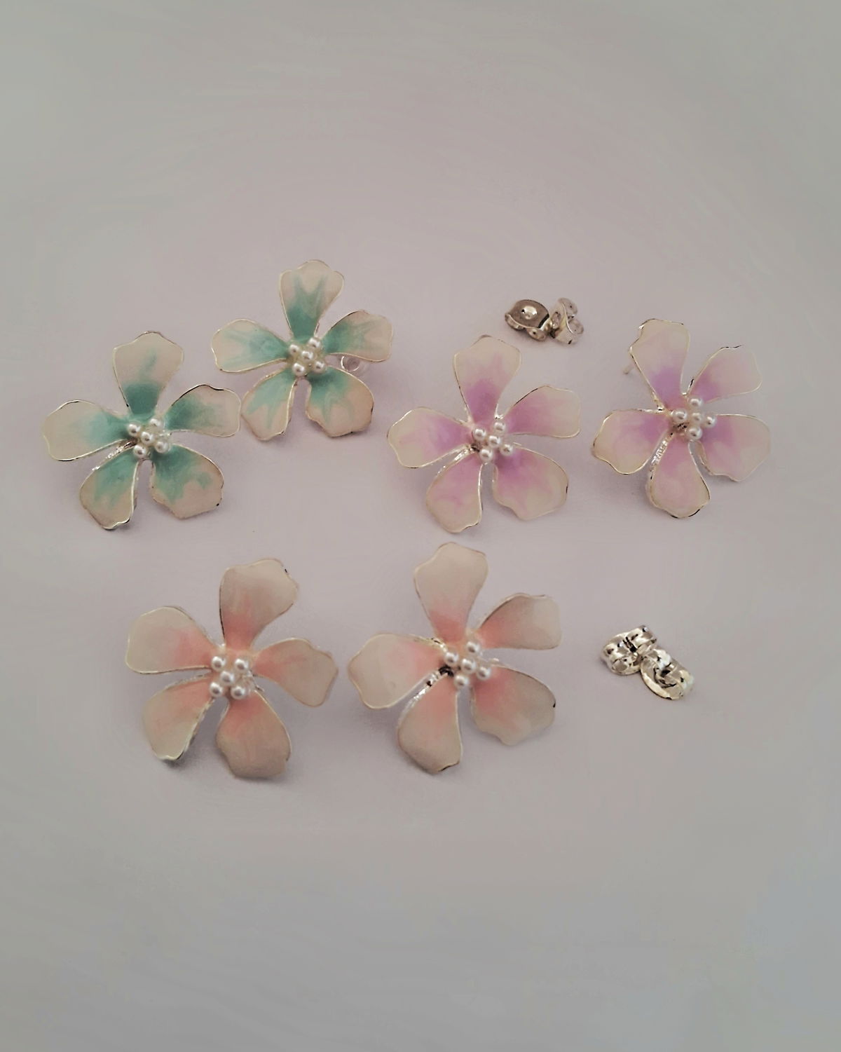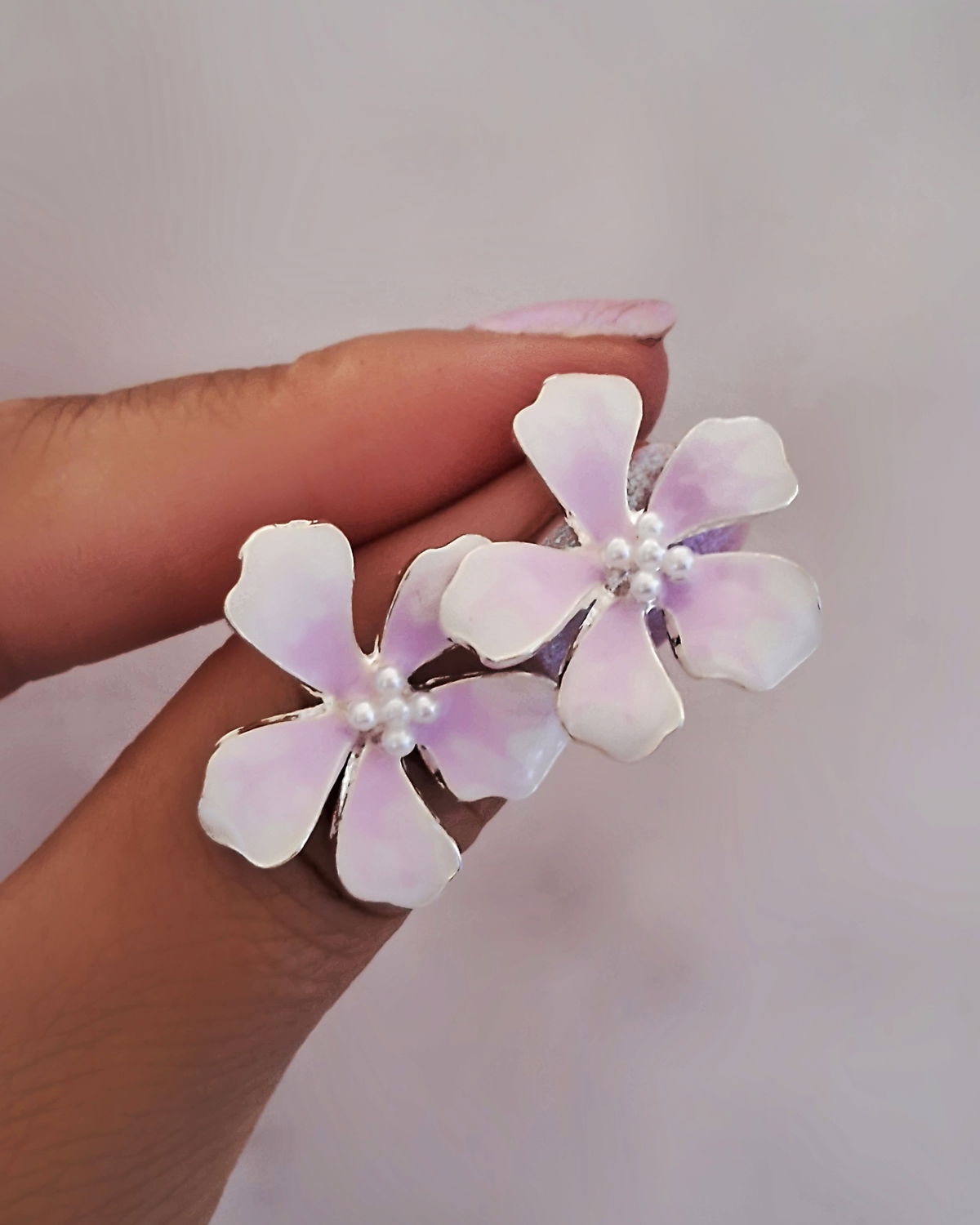 Aros Flor Petal Lila Pastel Ac. Blanco