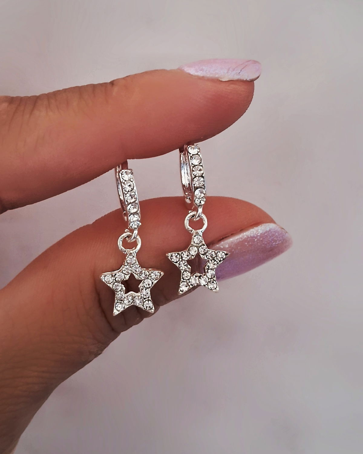 Argollas Strass Estrella Ac. Blanco