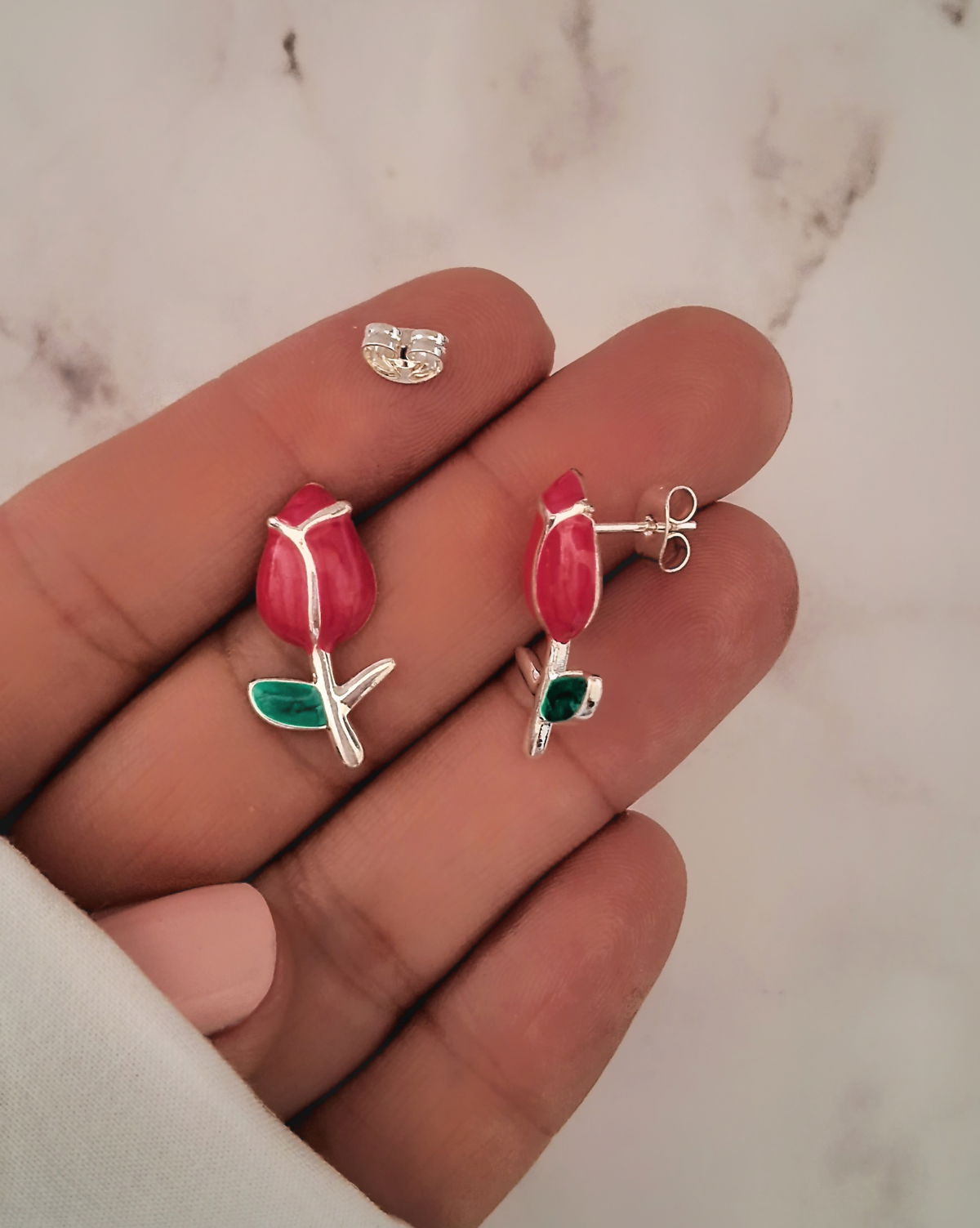 Aros Tulipan Rojo 20mm Ac. Blanco