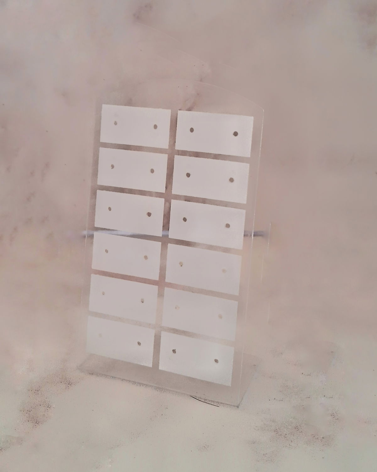 En estos exibidores vienen los aros para vender, por lo que pueden tener detalles estéticos.