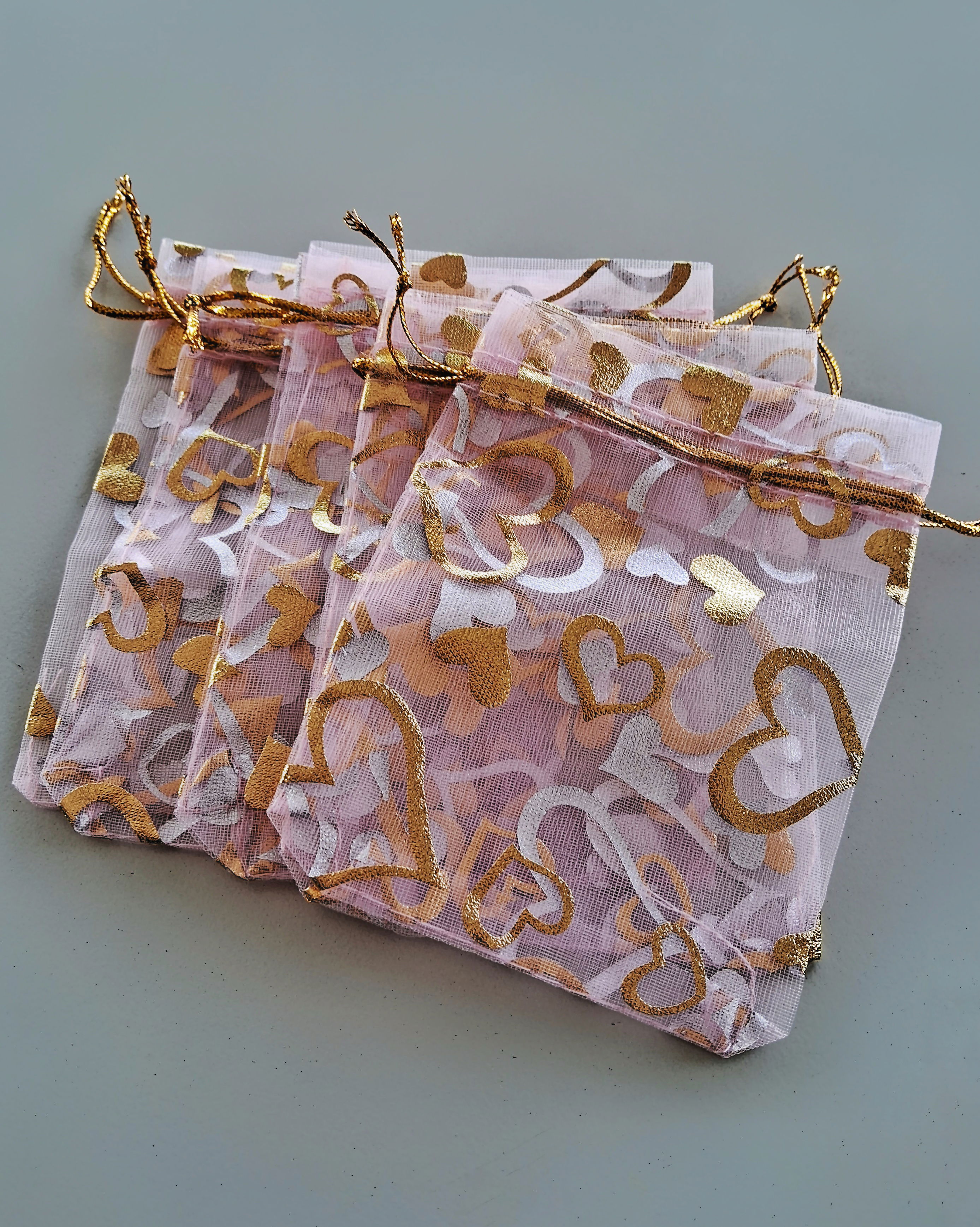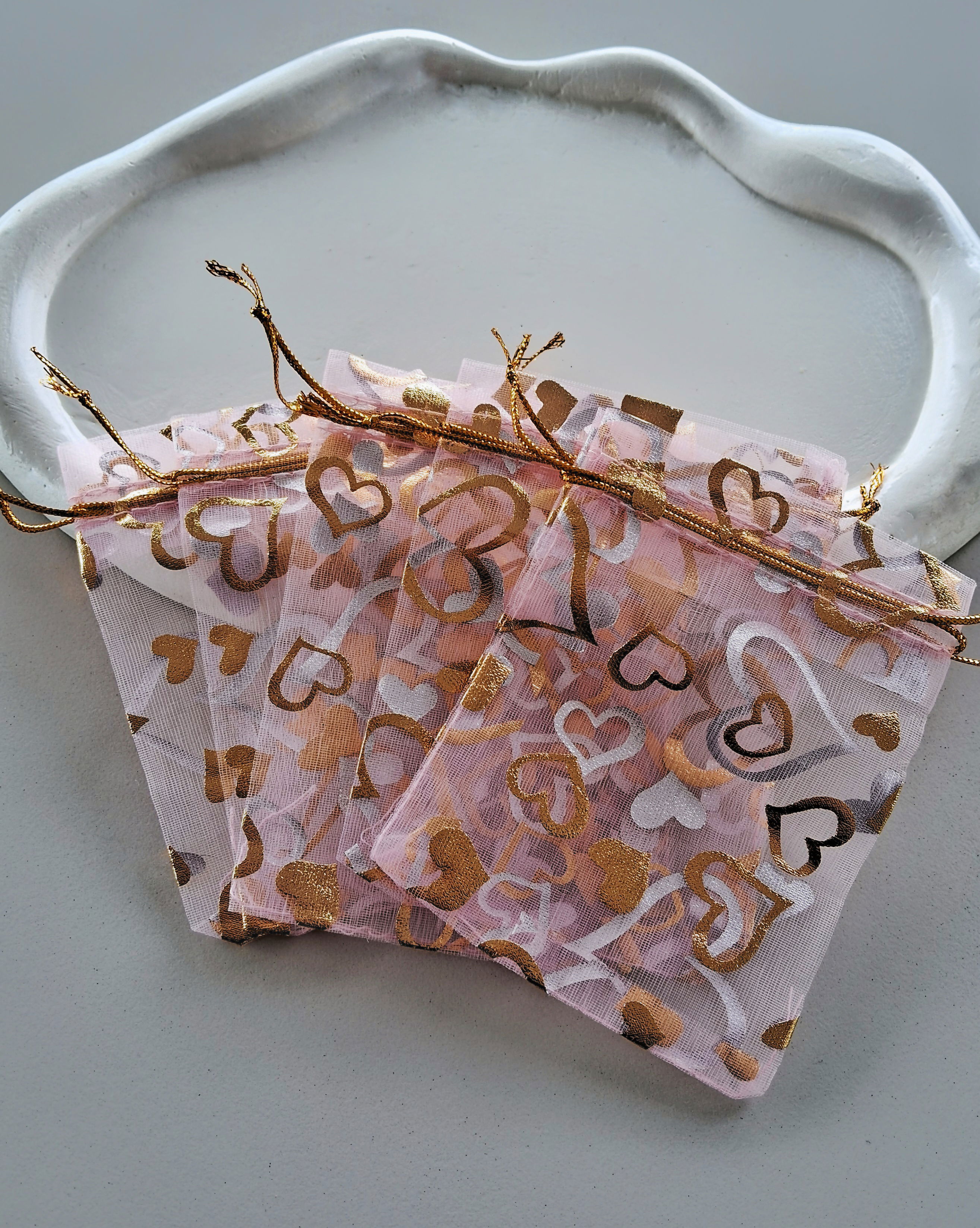 Pack x5 Bolsitas de Organza Rosa Corazón