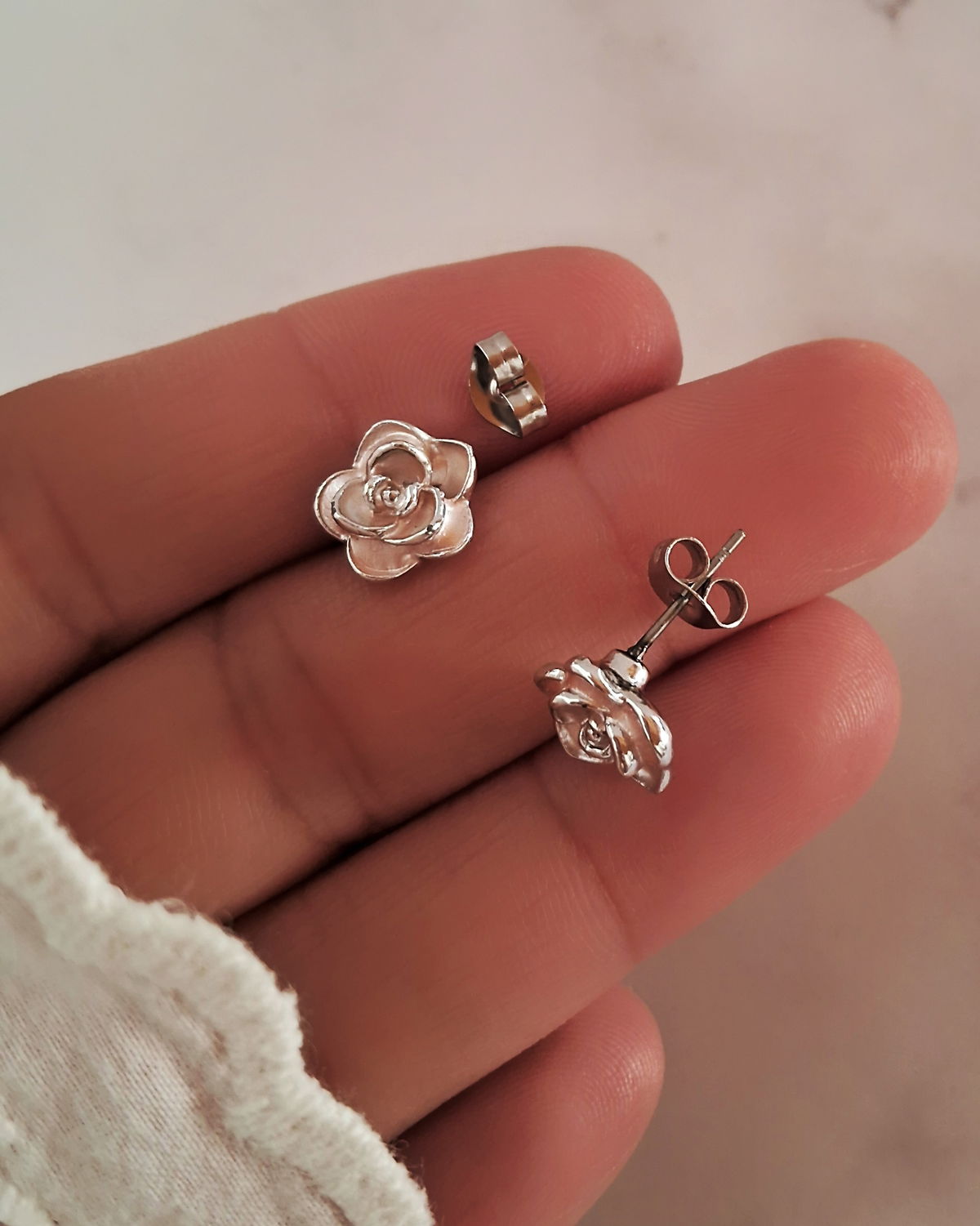Aros Flor Esmaltada Rosa Ac. Quirúrgico