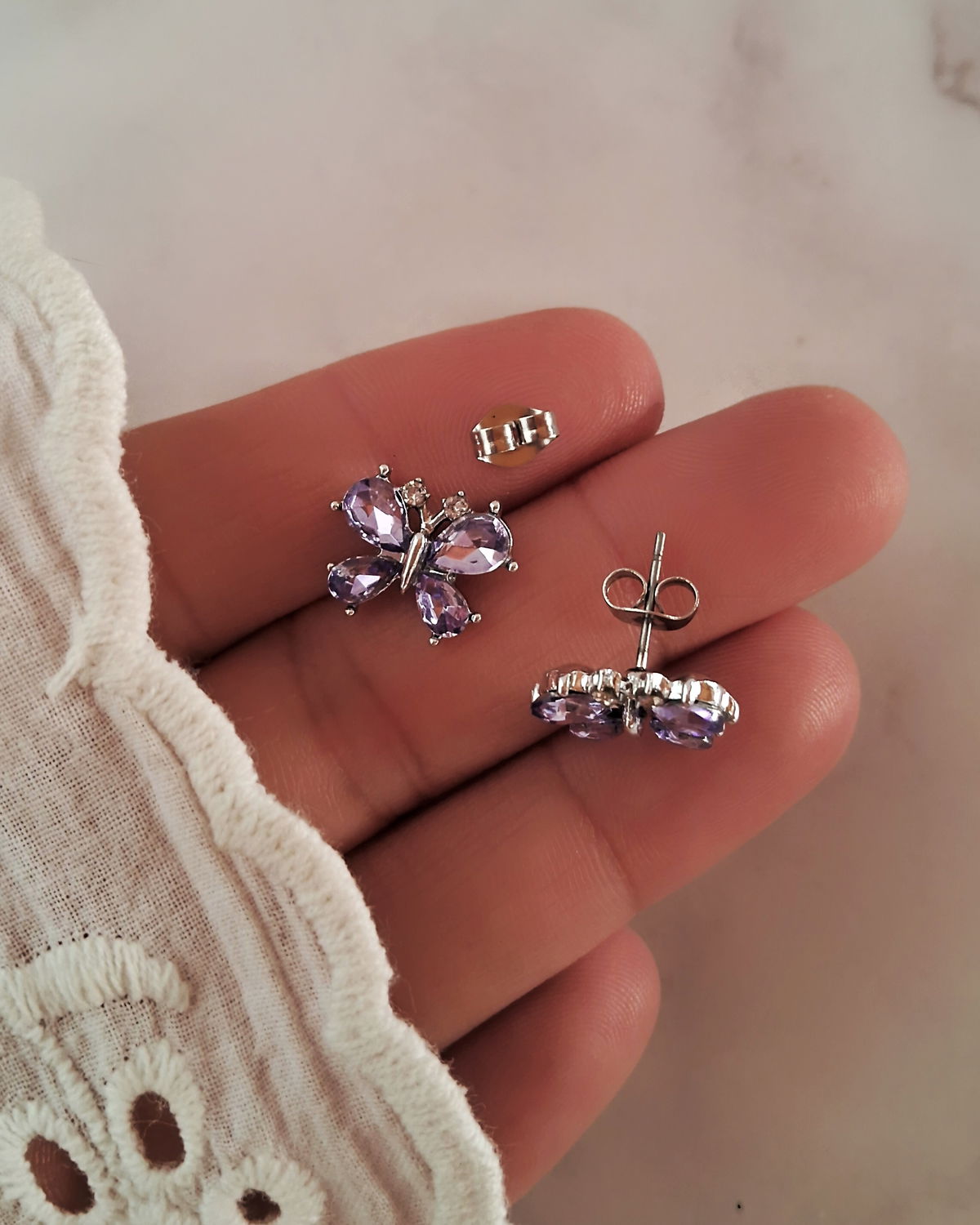 Aros Mariposa Gem Violeta Ac. Quirúrgico