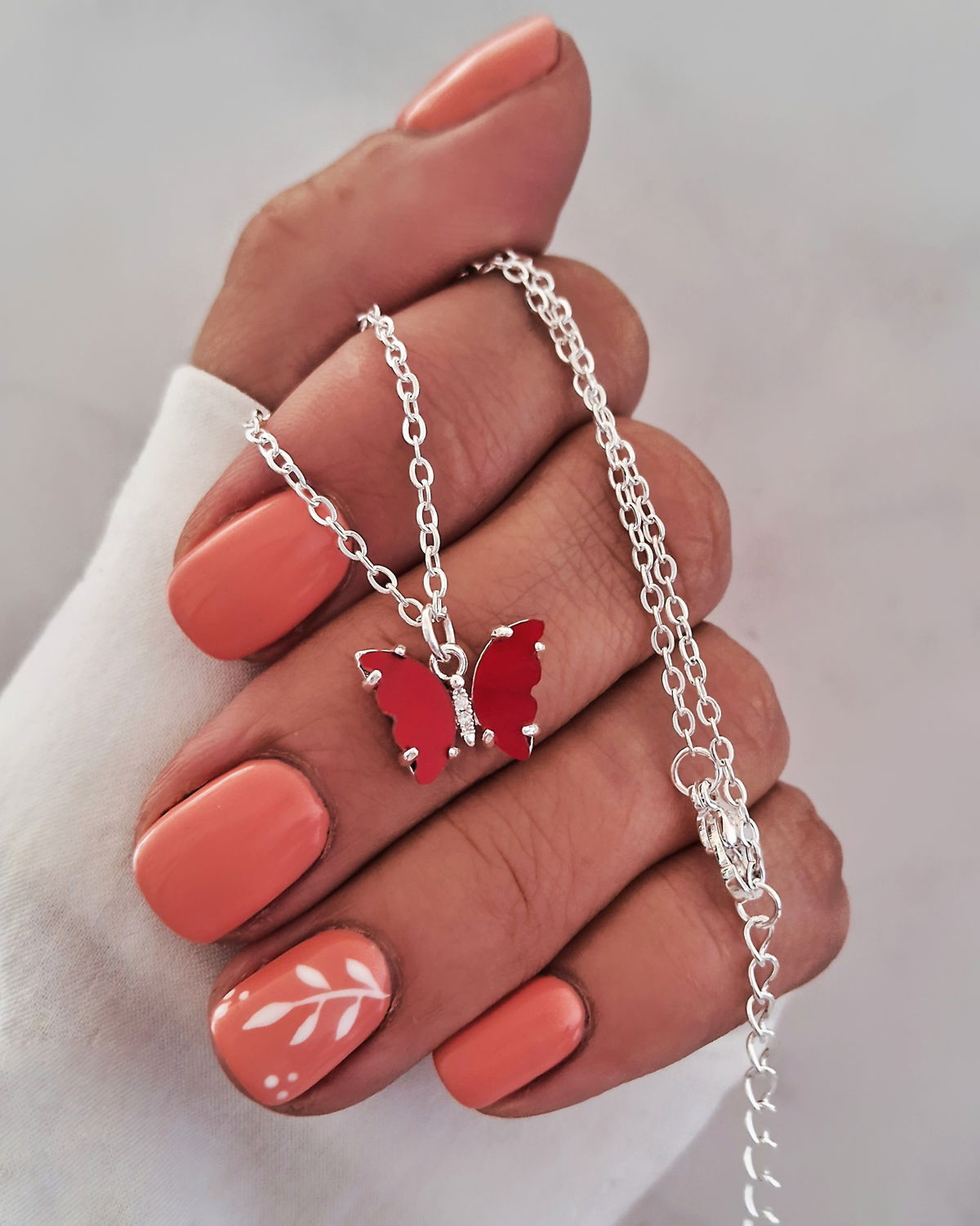 Collar Mariposa Nácar Rojo 45-5cm Ac. Blanco