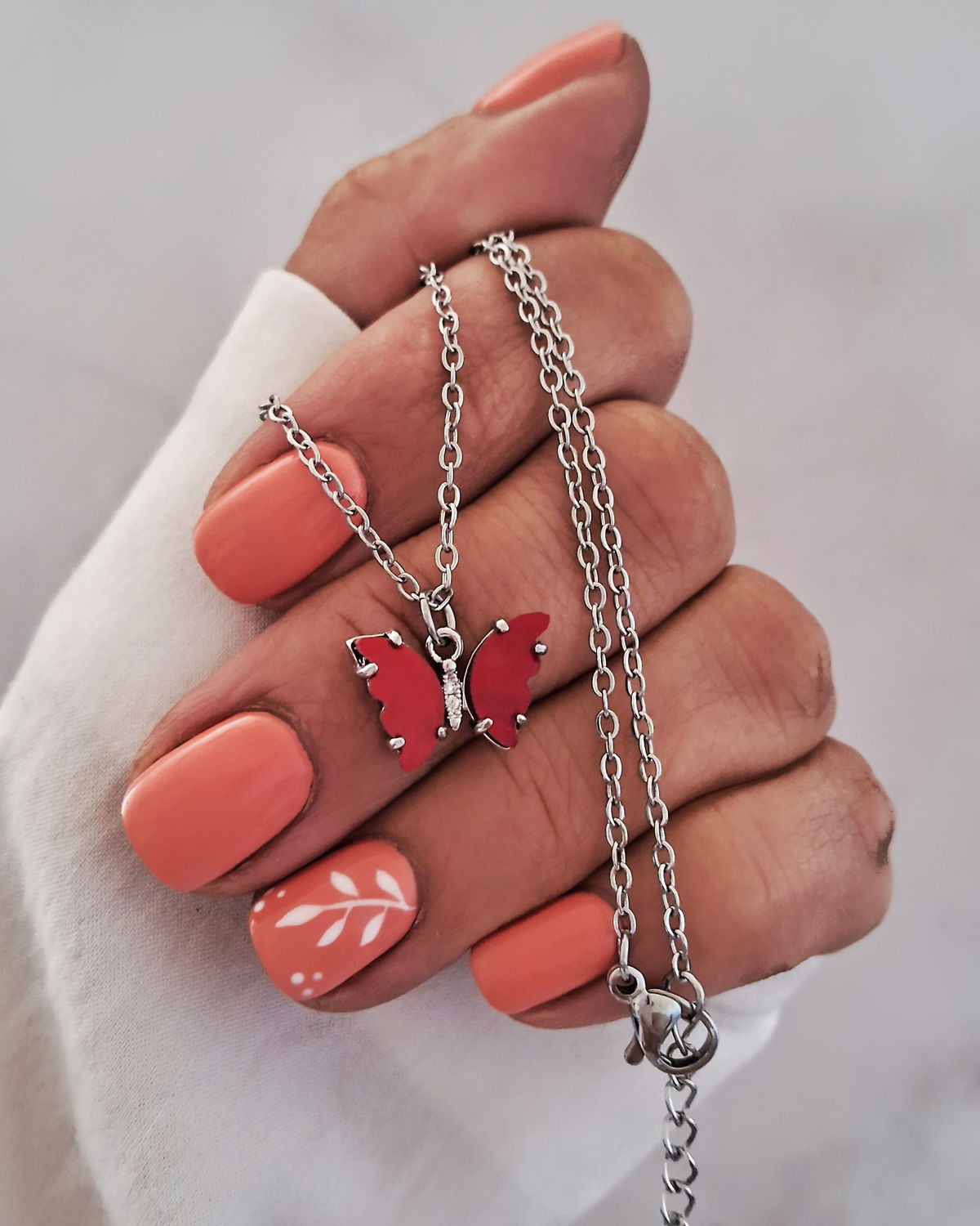 Collar Mariposa Nácar Rojo 45-5cm Ac. Quirúrgico