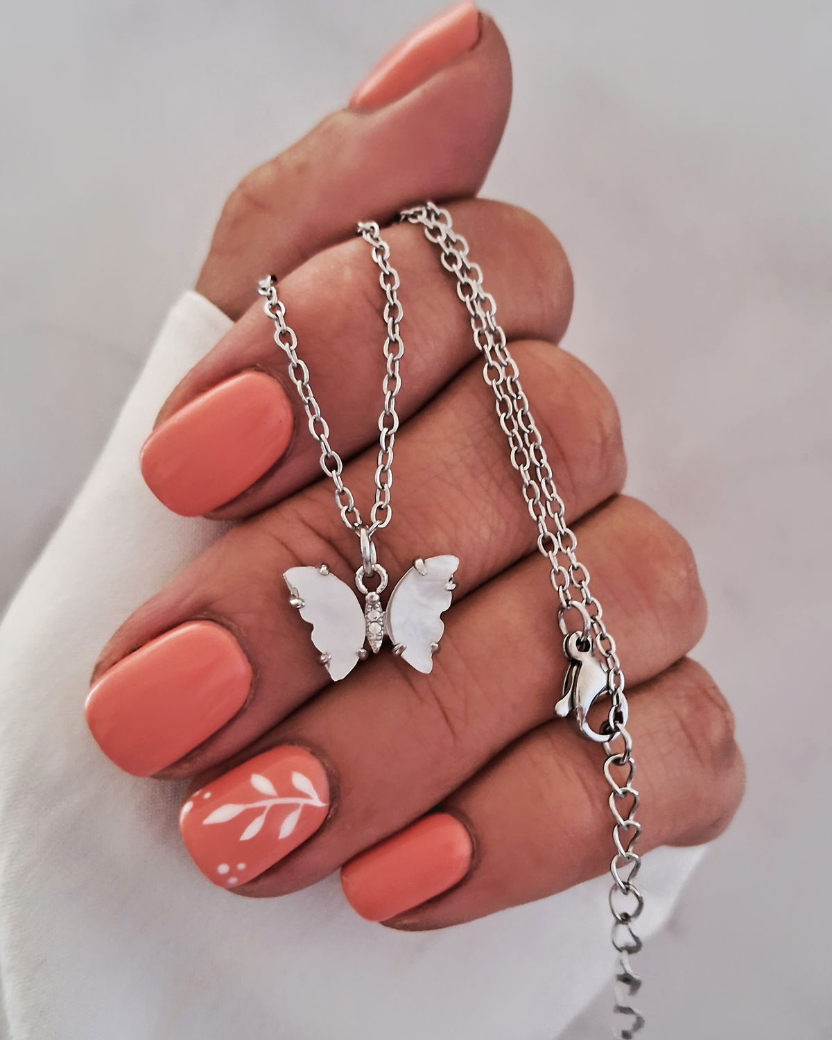 Collar Mariposa Nácar Blanco 45-5cm Ac. Quirúrgico