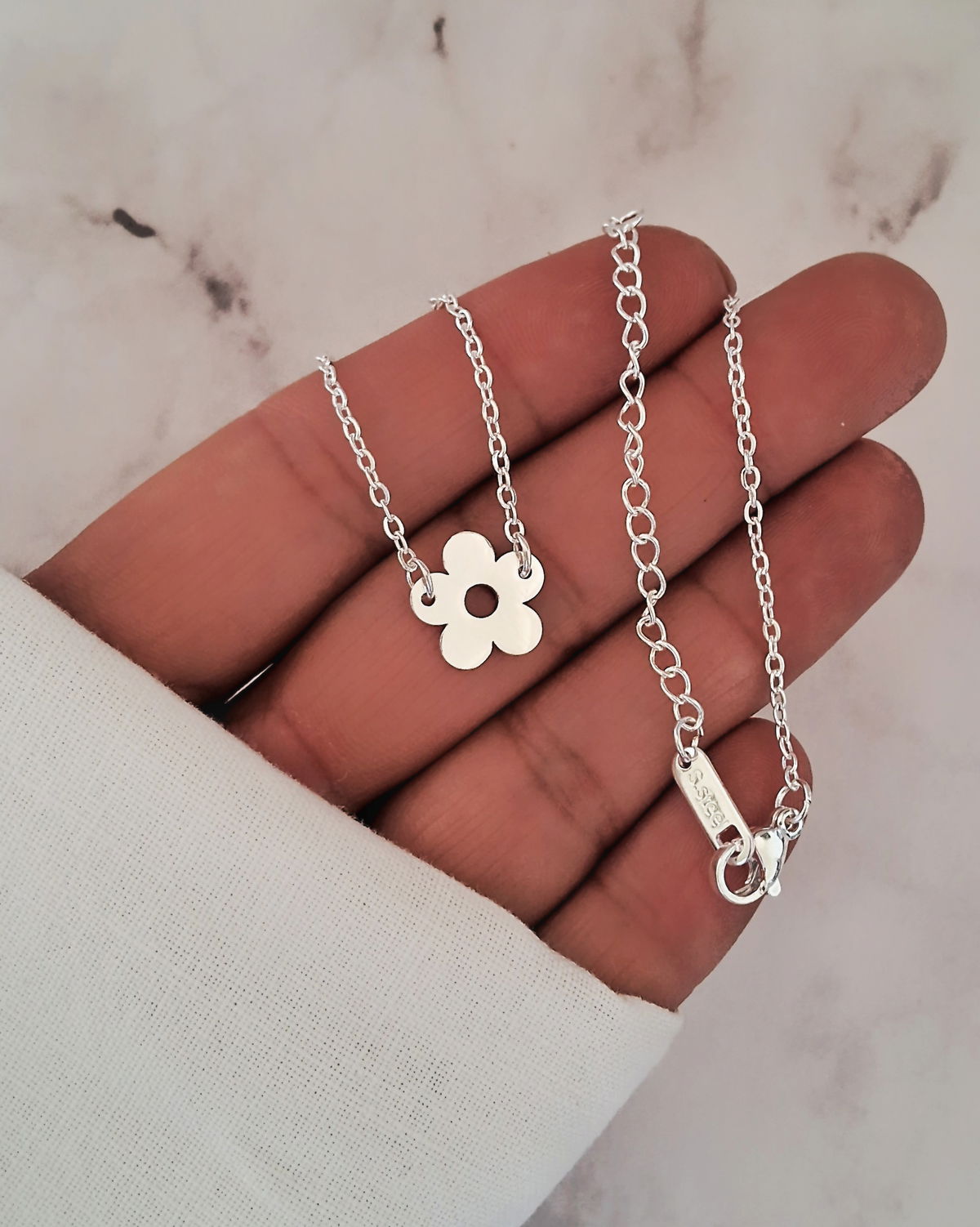 CADENA ACERO BLANCO CON DIJE FLOR 12mm