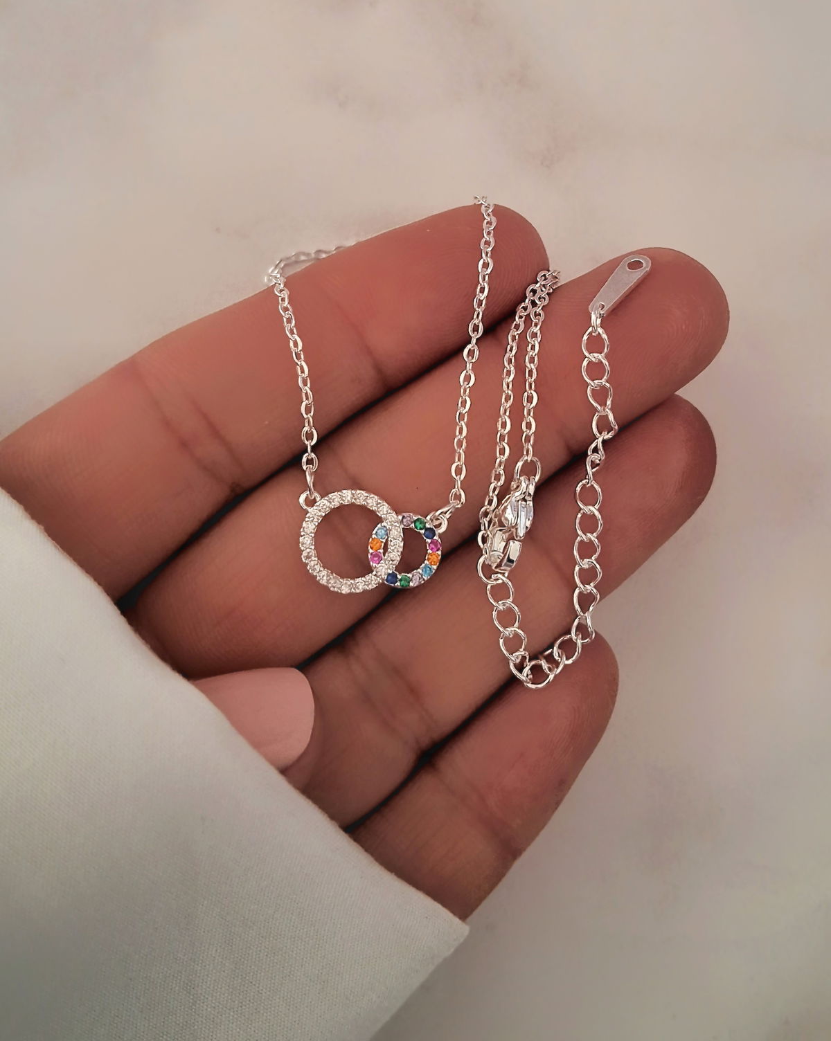 Collar Doble Circle Shine Rainbow 40-5cm Ac. Blanco