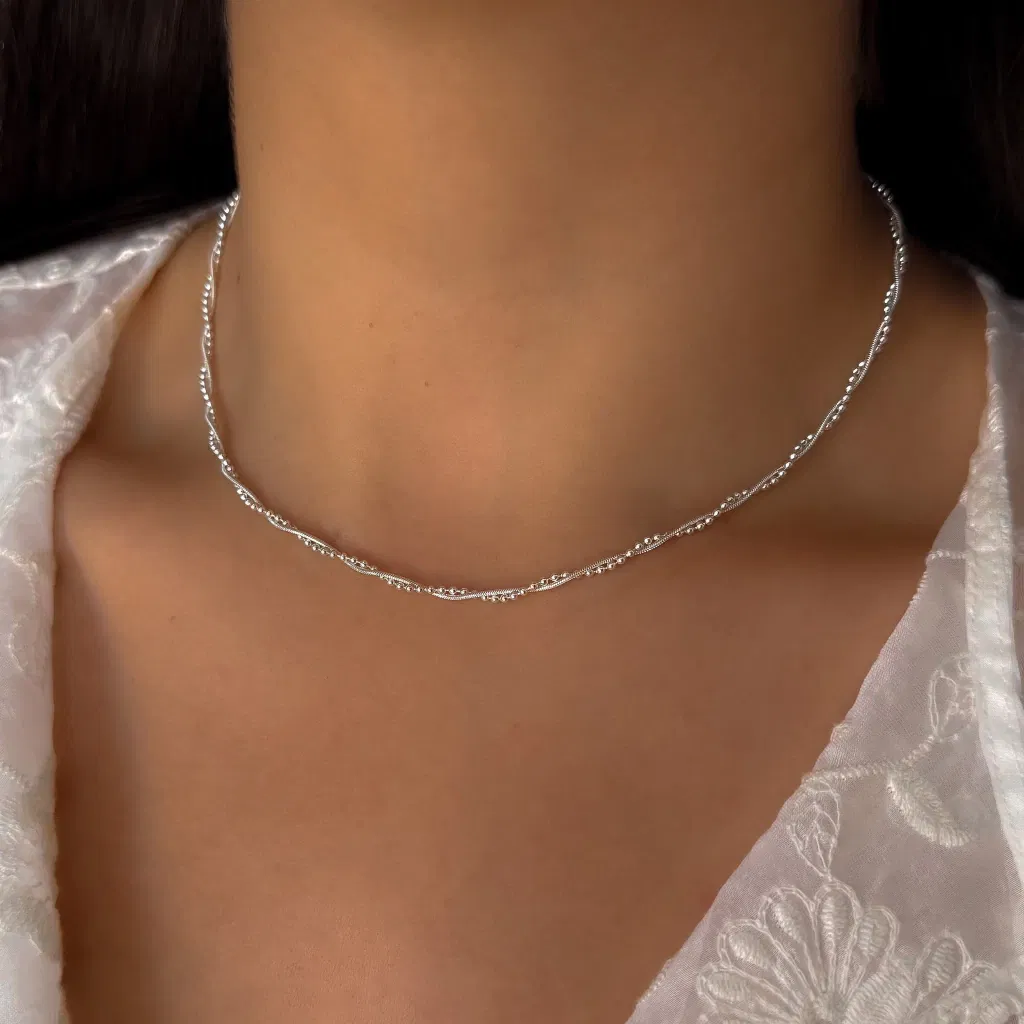 Collar Doble Intrelazada 40-5cm Ac. Blanco