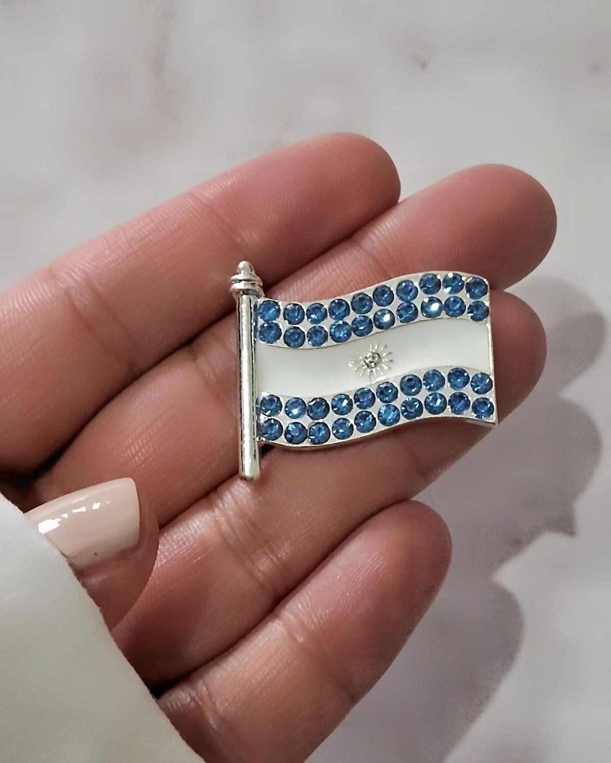 Escarapela Bandera con Sol Strass Plateado