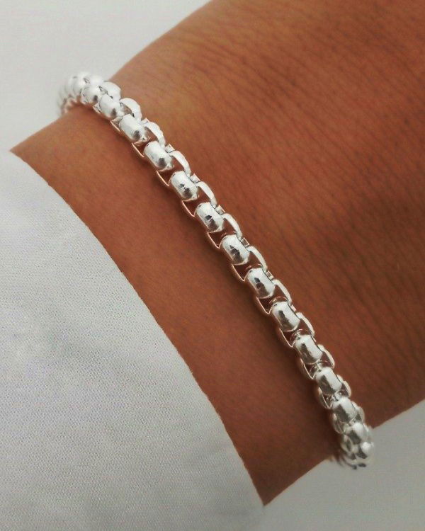 Pulsera Rolo Cuadrado 4mm 20cm Ac. Blanco