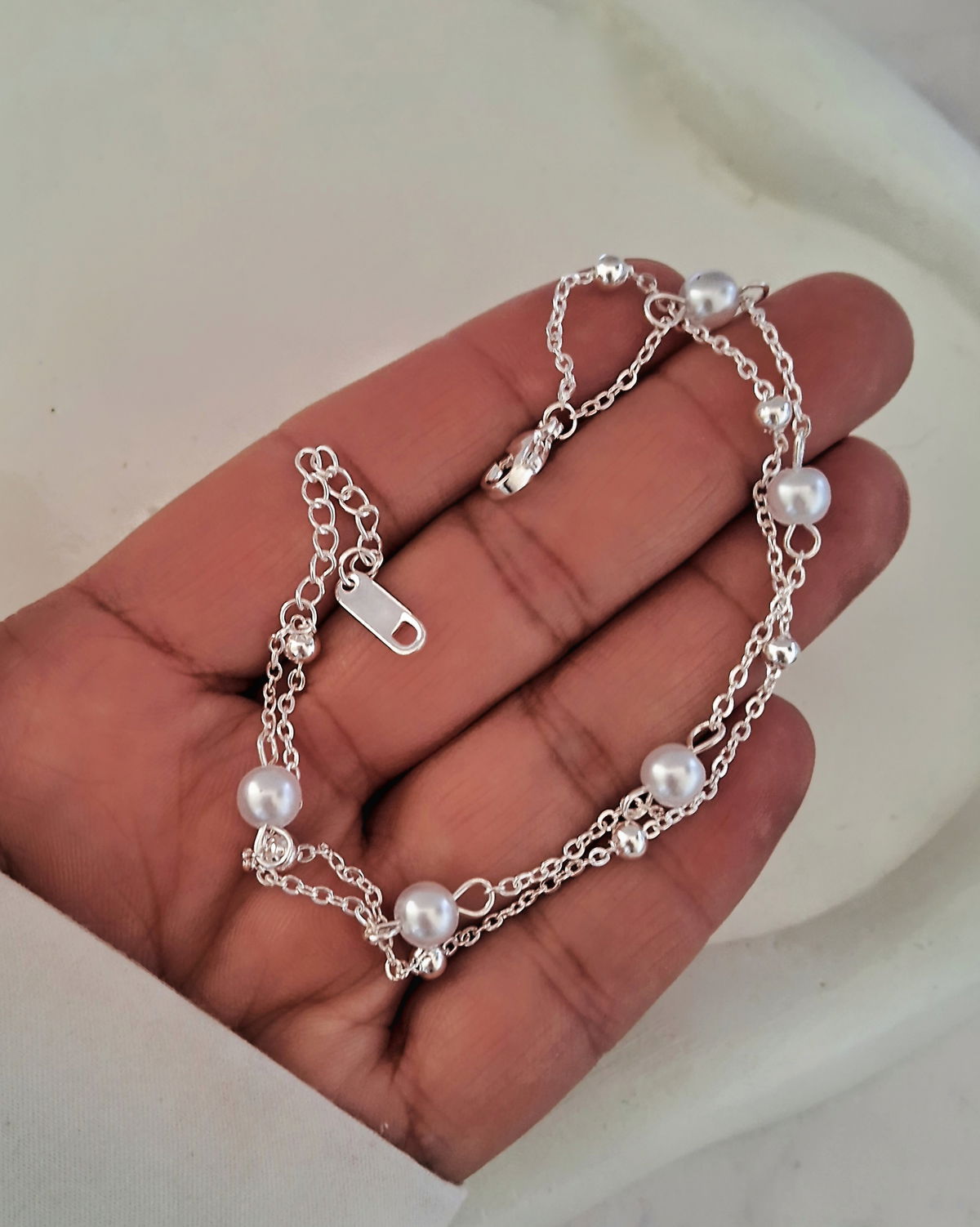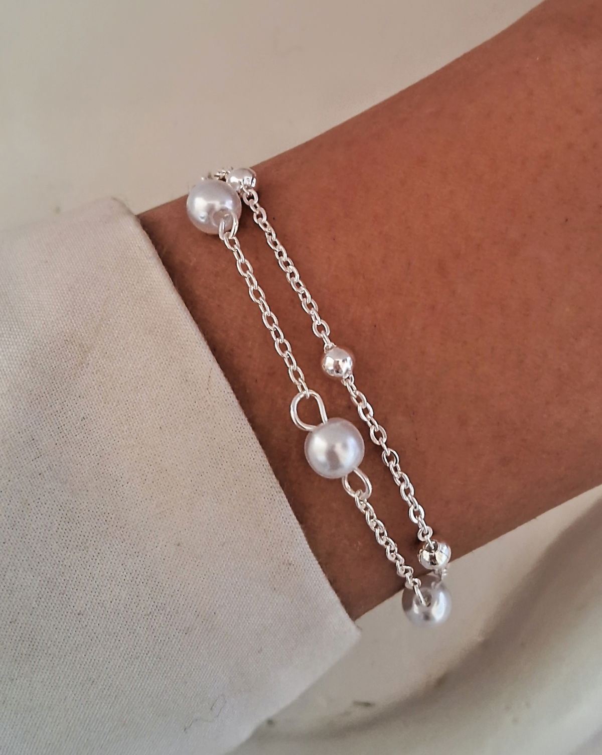Pulsera Doble Pearl Bou 18-3cm Ac. Blanco