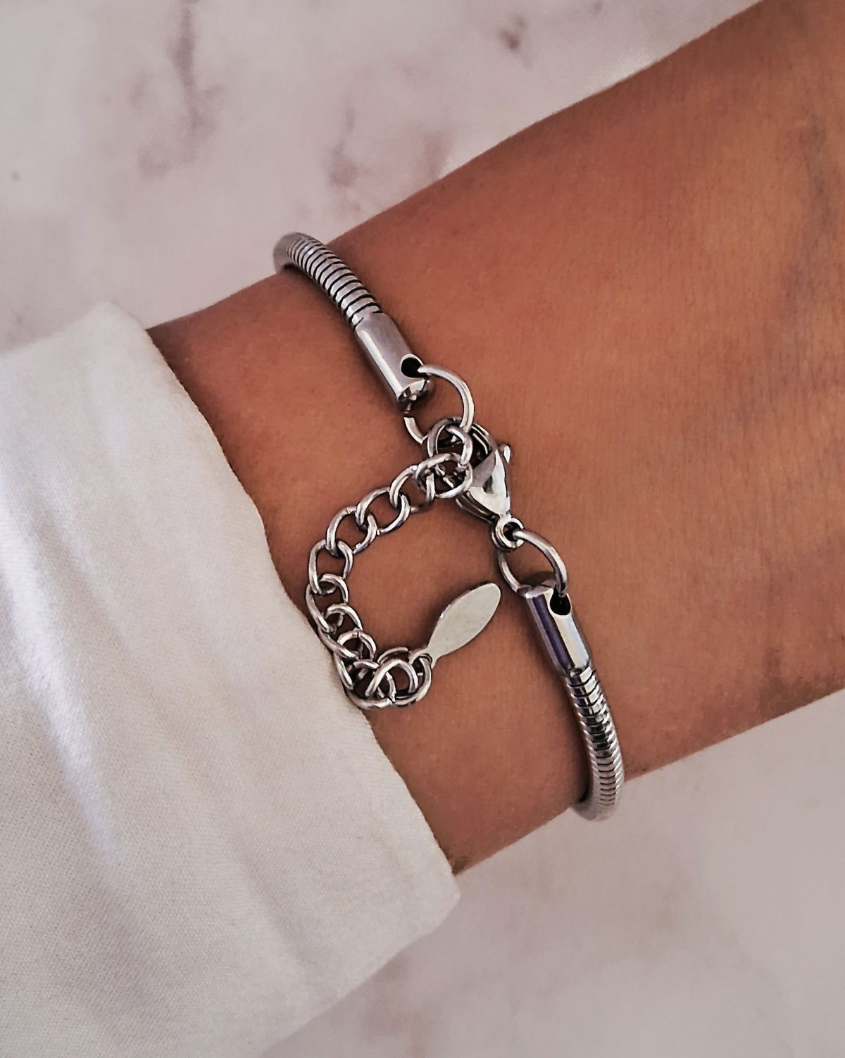 Pulsera de Ac. Quirúrgico Eslabon cola de raton, símil Pandora Con dijes de fantasía