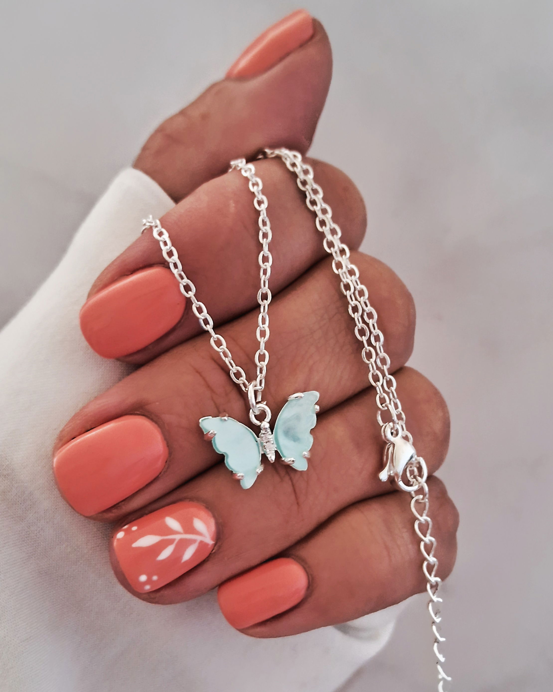 Collar Mariposa Nácar Celeste 45-5cm Ac. Blanco