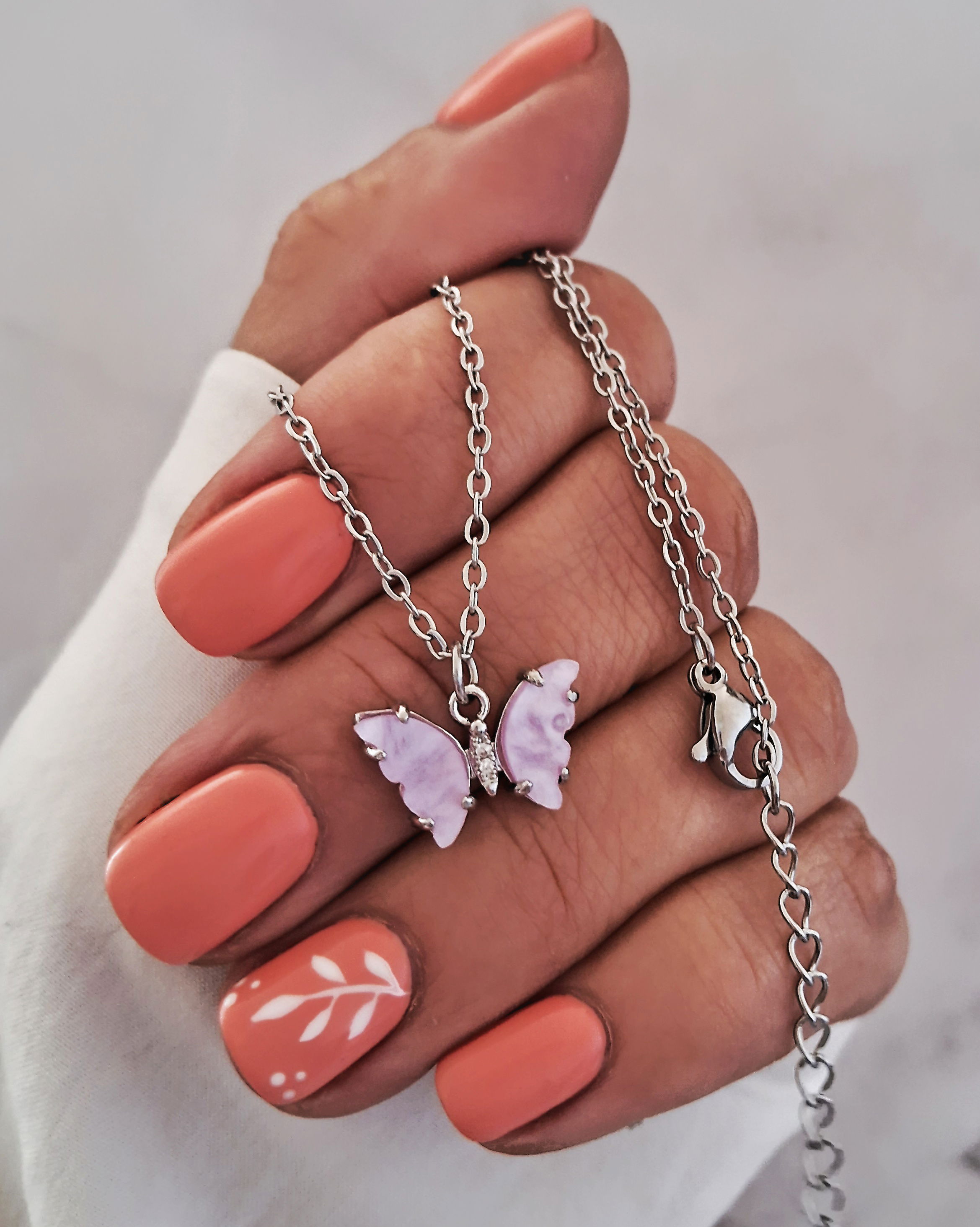Collar Mariposa Nácar Lila 45-5cm Ac. Quirúrgico