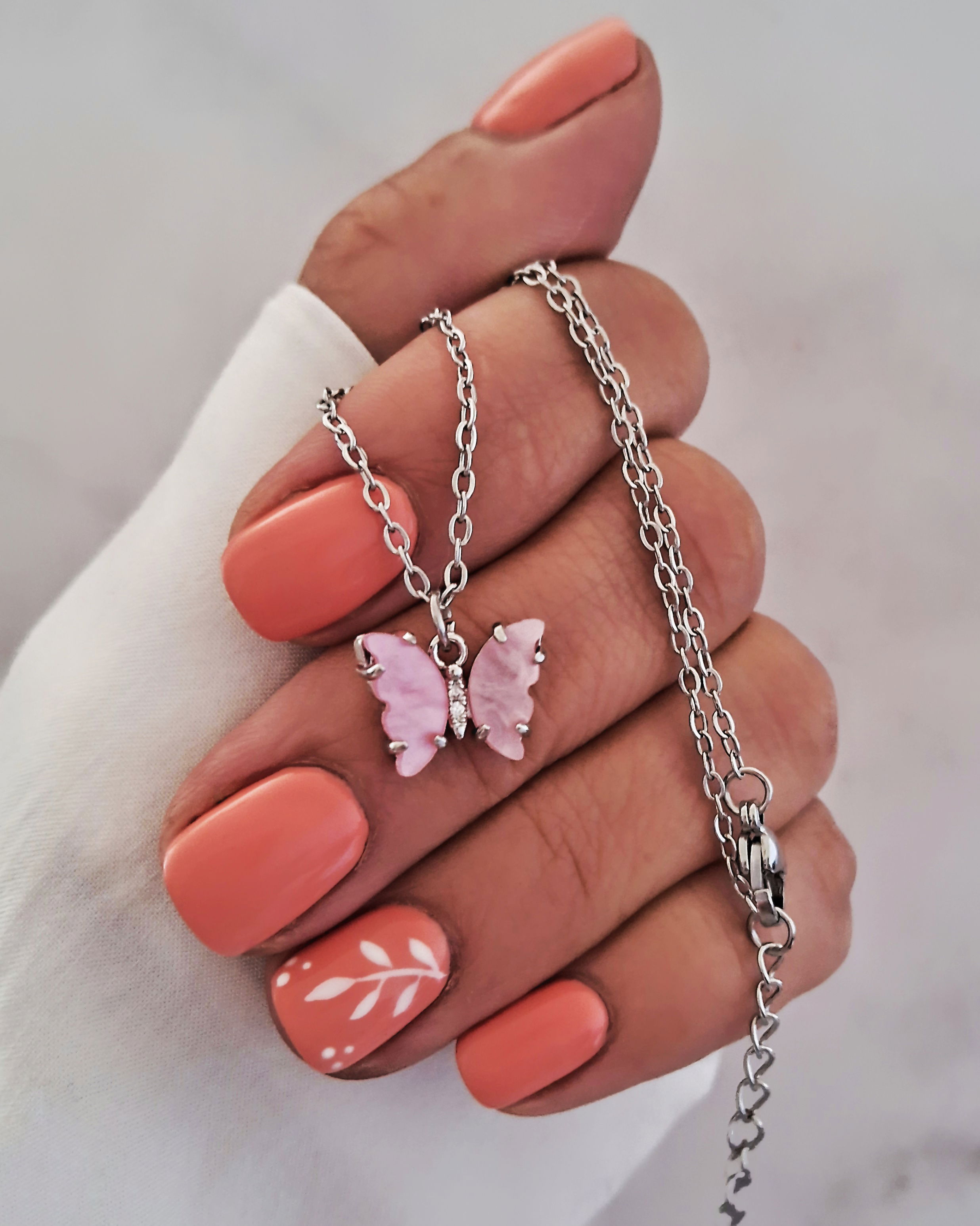 Collar Mariposa Nácar Rosa 45-5cm Ac. Quirúrgico