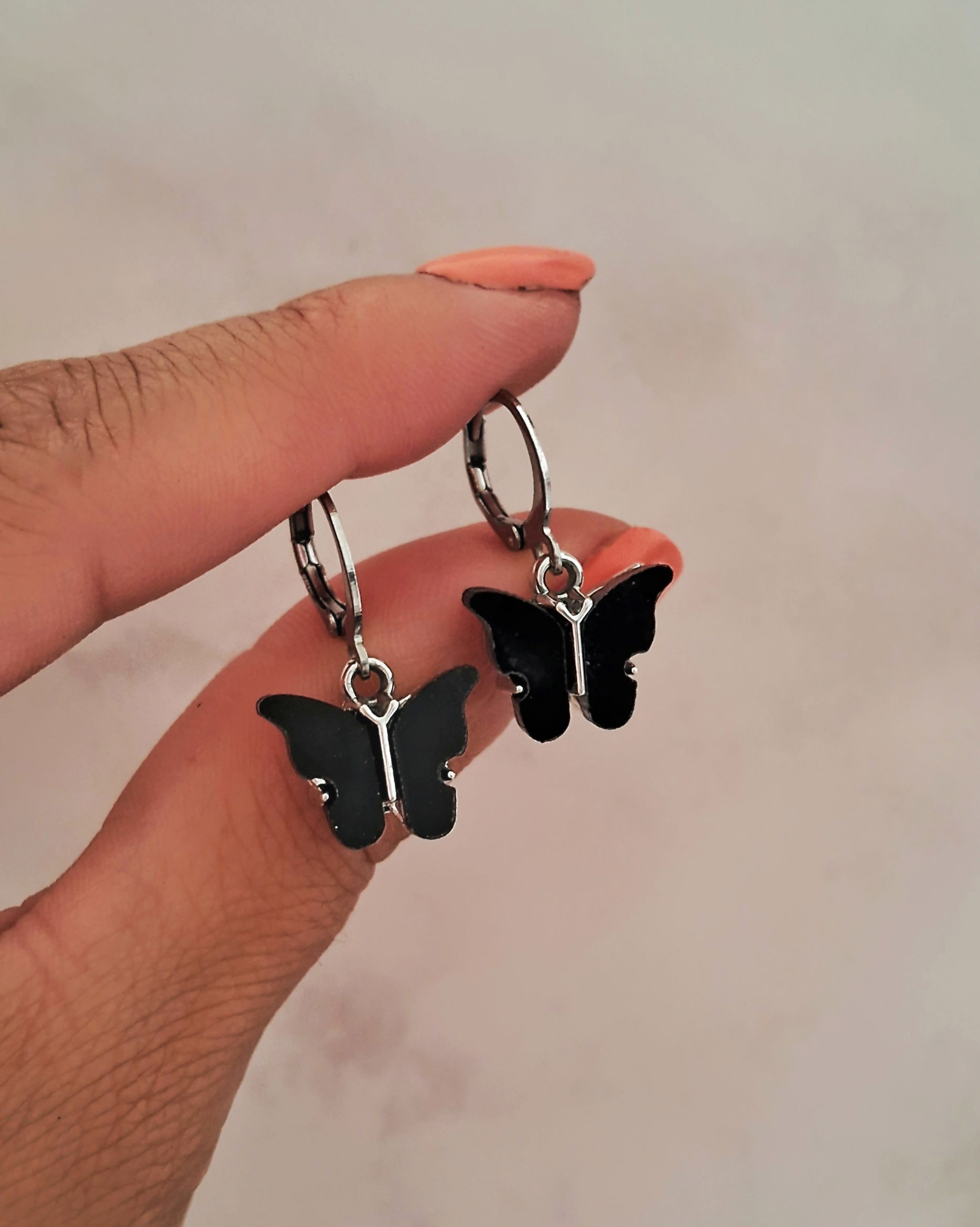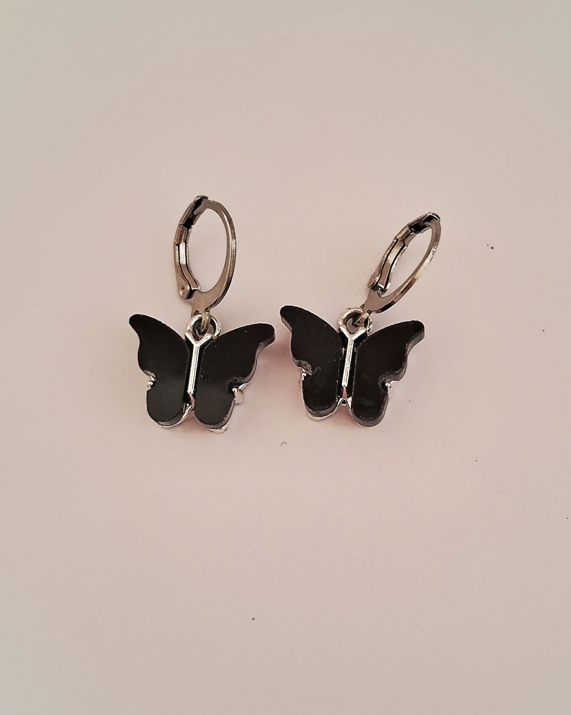 Argollas Mariposa Nacar Negro Ac. Quirúrgico