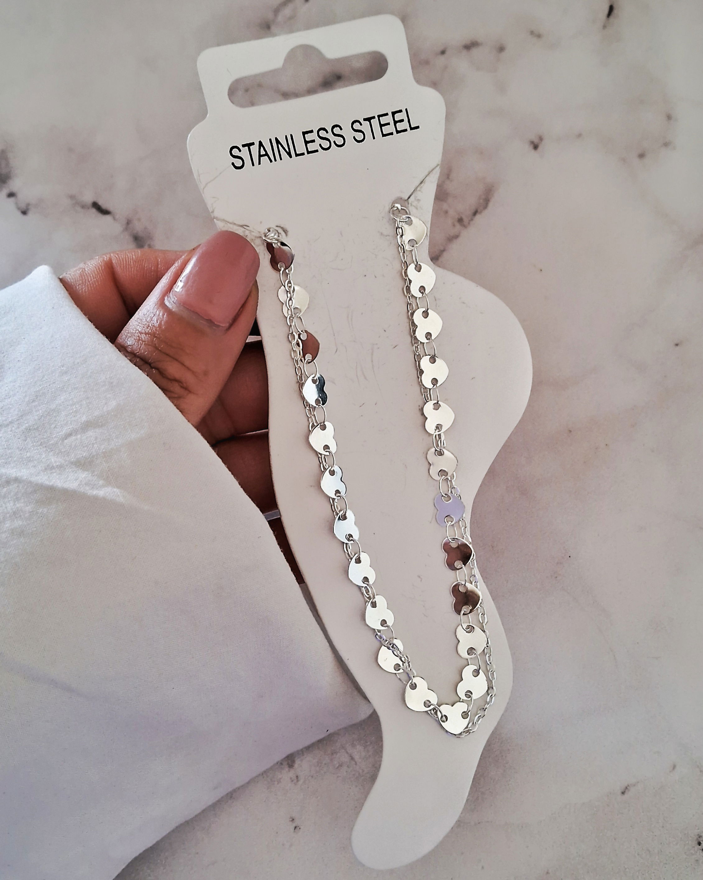 Tobillera Doble Corazón 22-5cm Ac. Blanco